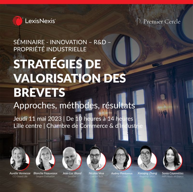 Le 11 mai 2023, Blanche Feauveaux, Associée de Sorgem Evaluation, a animé, auprès d’autres experts reconnus dans le domaine de la propriété intellectuelle, la conférence sur les Stratégies de Valorisation des Brevets organisée par LexisNexis Intellectual Property Solutions et Premier Cercle à la Chambre de Commerce et d’Industrie de Lille.